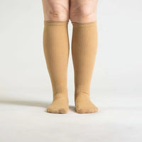 Till skillnad från många tajta kompressionsstrumpor med en klinisk känsla, är Evirelle designade för vardagskomfort. Med skonsam graderad fotledskompression (ca 15–20 mmHg vid fotleden) är de lätta att ta på, mjuka mot huden och ger tillräckligt med stöd för att hålla dina ben lätta hela dagen.